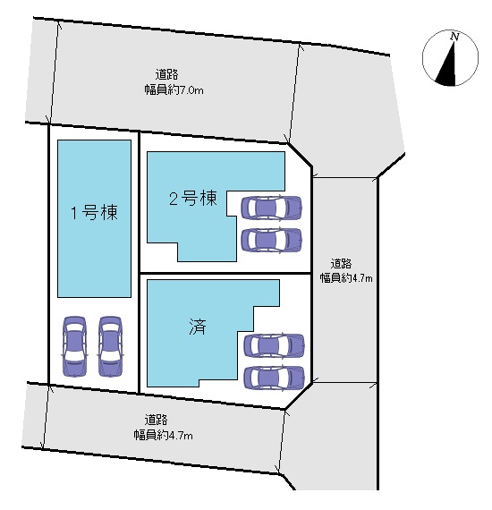 方向:北/東/南 幅員:7.0m/4.7m/4.7m |