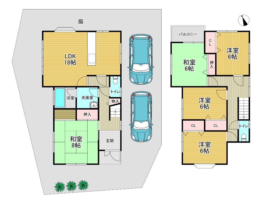 ●1階/LDK18、和8 ●2階/和6、洋6×3 |