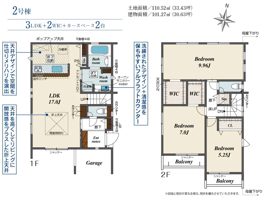 ●1階/LDK17 ●2階/洋5.25、洋7、洋9.96 |