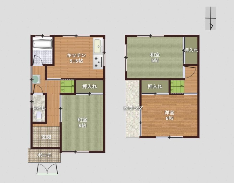 ●1階/DK5.5、和6 ●2階/和6、洋6 |