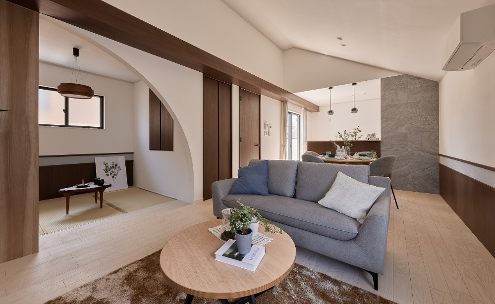 ☆全10区画内の8号地モデルハウス!☆駐車2台可(車種による)!☆LDK+和室で広々約20帖! ☆リビングダイニングの上部全面は勾配天井で開放感あり!☆全居室収納付きでお部屋がスッキリ片付きます! ☆キッチンは家族の様子を見守りながら家事ができる対面式!フラットにつながるバルコニーは寛ぎの空間!