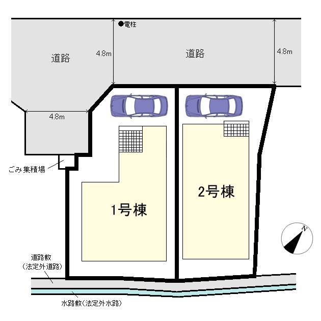 | ●1号棟:2980万円(3LDK+タタミコーナー+WIC・土地99.84u・建物99.62u(別途ルーフバルコニー面積6.48u有り) ●2号棟:2880万円(3LDK・土地面積90.99u・建物96.38u・(別途ルーフバルコニー面積5.67u有り) |
